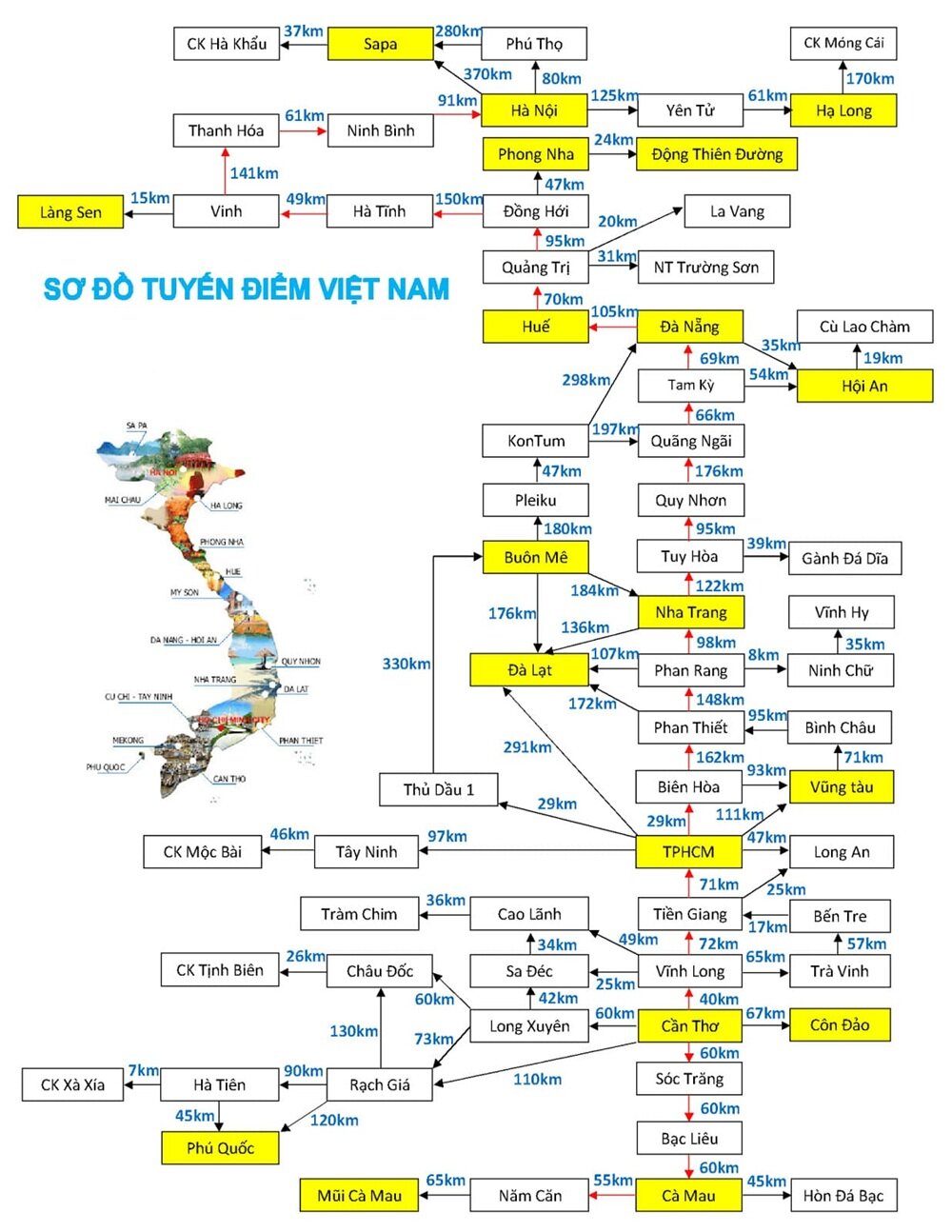 Sơ đồ tuyến điểm du lịch Việt Nam
