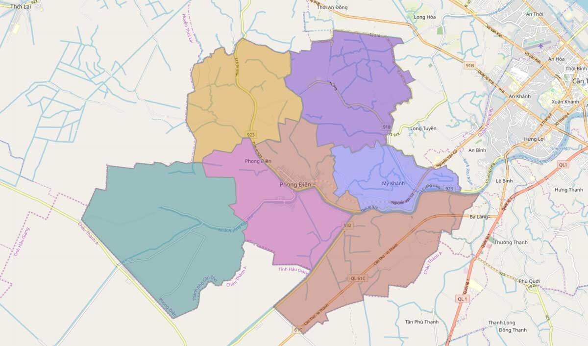 Phong Điền có 1 thị trấn và 6 xã: Giai Xuân, Mỹ Khánh, Nhơn Ái, Nhơn Nghĩa, Tân Thới và Trường Long. Huyện nổi tiếng với vườn trái cây, homestay miệt vườn và các điểm du lịch sinh thái đặc trưng miền Tây. Đây là địa phương có tiềm năng lớn trong phát triển du lịch cộng đồng và nông nghiệp kết hợp trải nghiệm.
