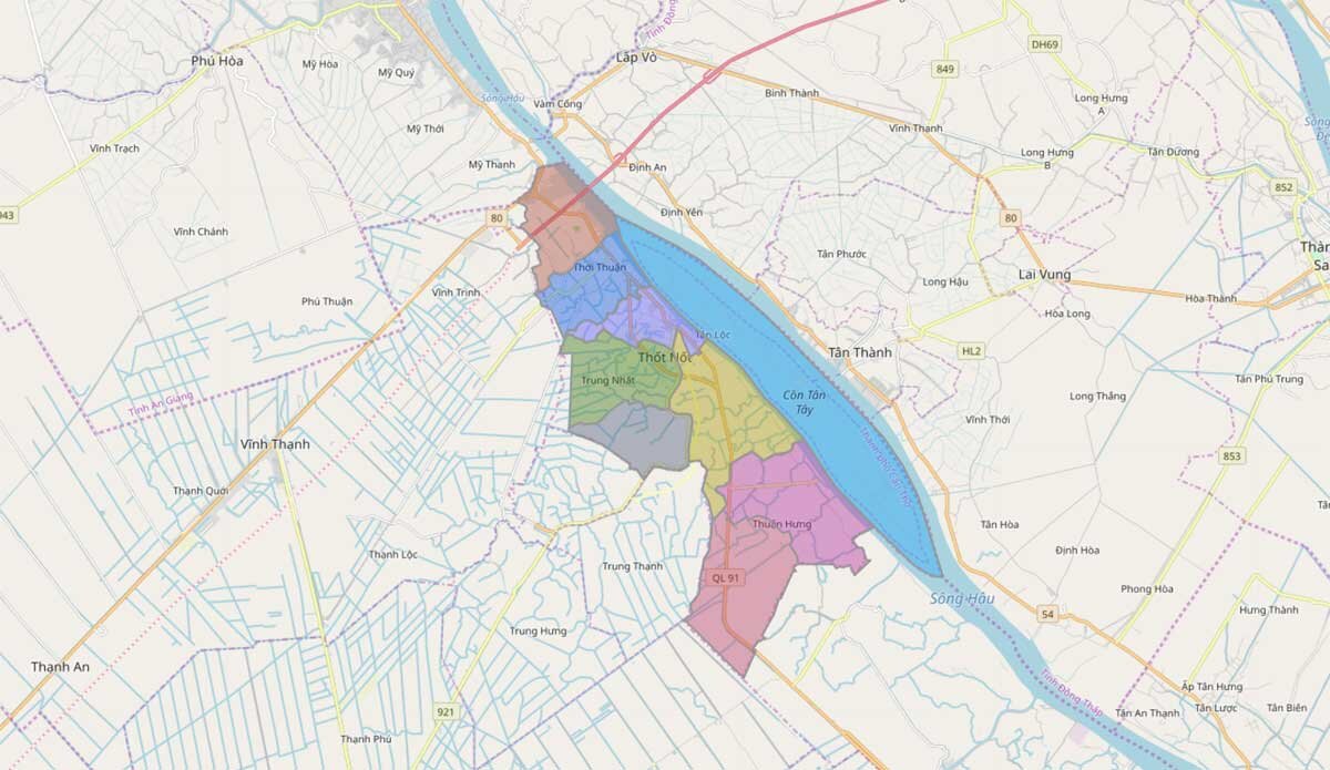 Bản đồ hành chính Cần Thơ mang đến góc nhìn trực quan về cấu trúc lãnh thổ của đô thị trung tâm vùng Đồng bằng sông Cửu Long. Qua hệ thống ký hiệu rõ ràng, người xem có thể nhận diện đầy đủ các quận Ninh Kiều, Bình Thủy, Cái Răng, Ô Môn, Thốt Nốt cùng các huyện Phong Điền, Cờ Đỏ, Vĩnh Thạnh và Thới Lai. Không gian hành chính được thể hiện mạch lạc theo trục sông Hậu, làm nổi bật đặc trưng sông nước và sự phân bố dân cư đặc thù. Bản đồ còn phản ánh các tuyến giao thông huyết mạch, kết nối nội đô và liên vùng một cách khoa học. Nhờ tính chính xác và cập nhật, đây là nguồn tư liệu hữu ích cho học tập, nghiên cứu cũng như tìm hiểu quy hoạch phát triển.