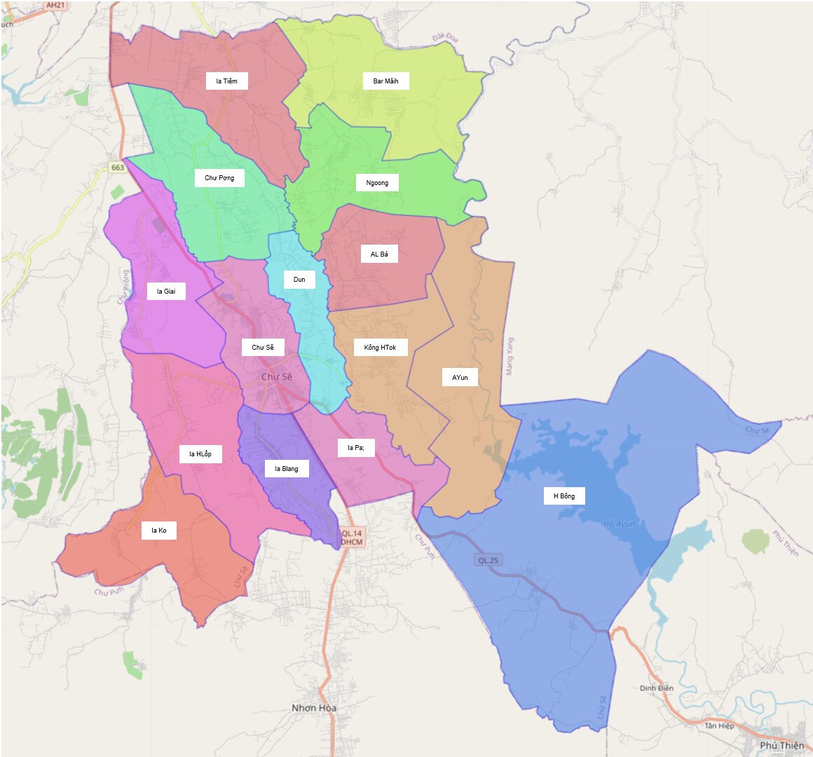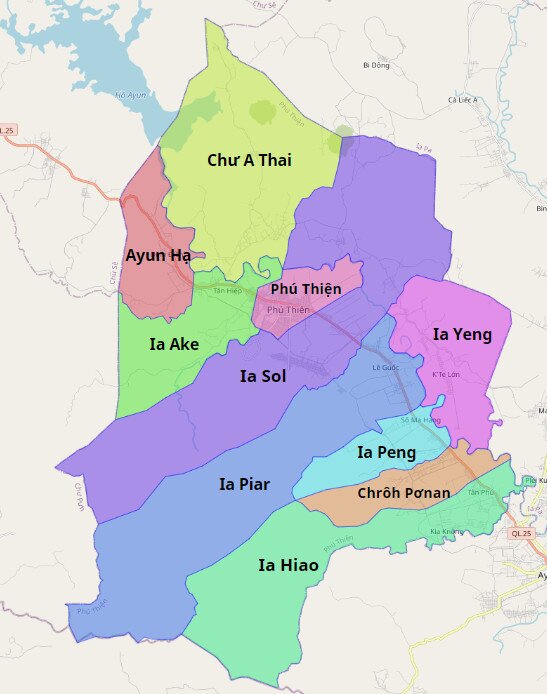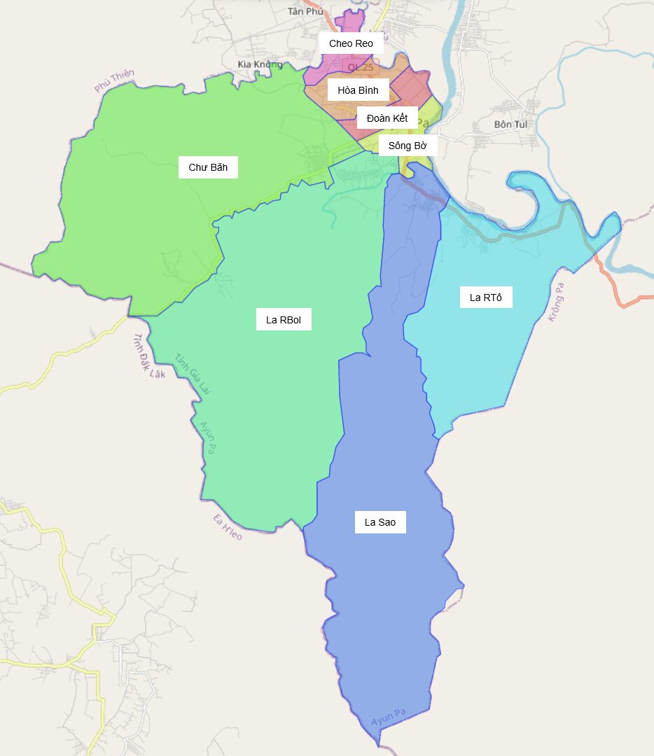 Bản đồ hành chính thị xã Ayun Pa