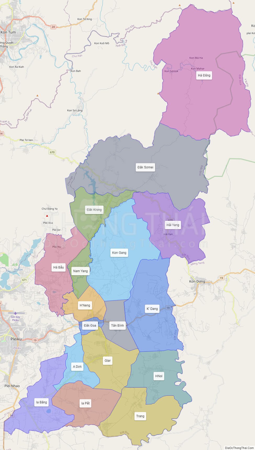 Bản đồ hành chính tỉnh Gia Lai