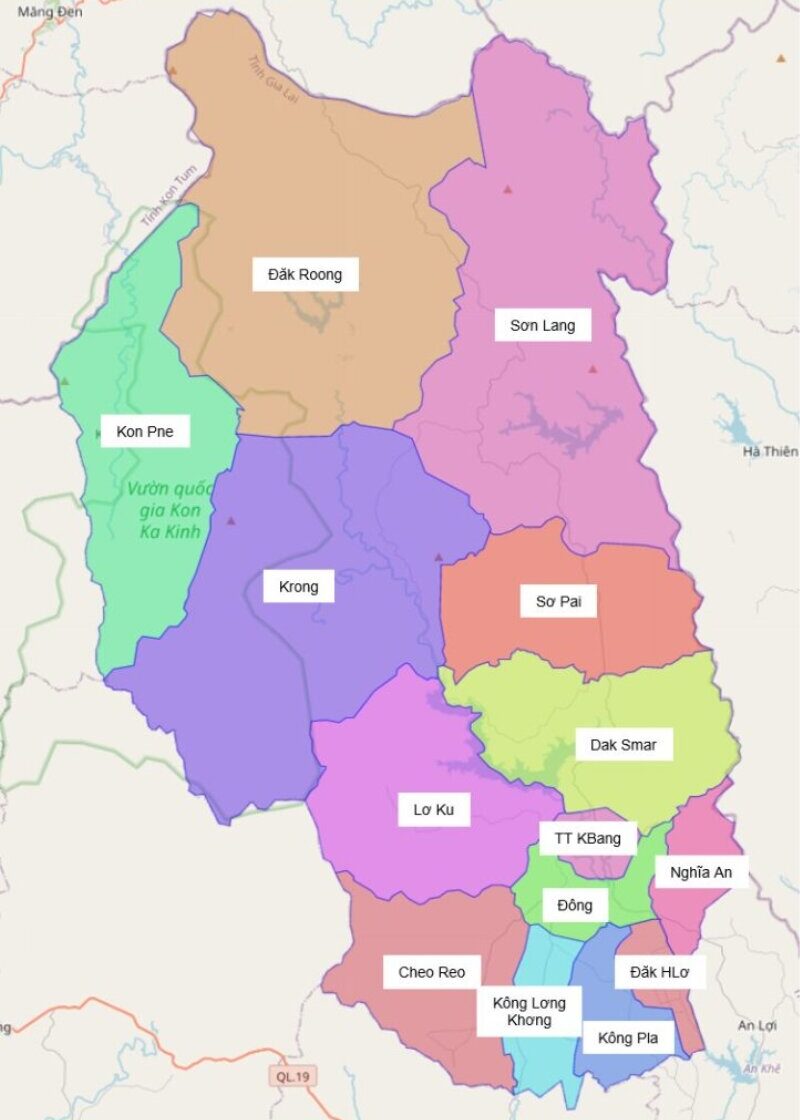 Bản đồ hành chính huyện Kbang