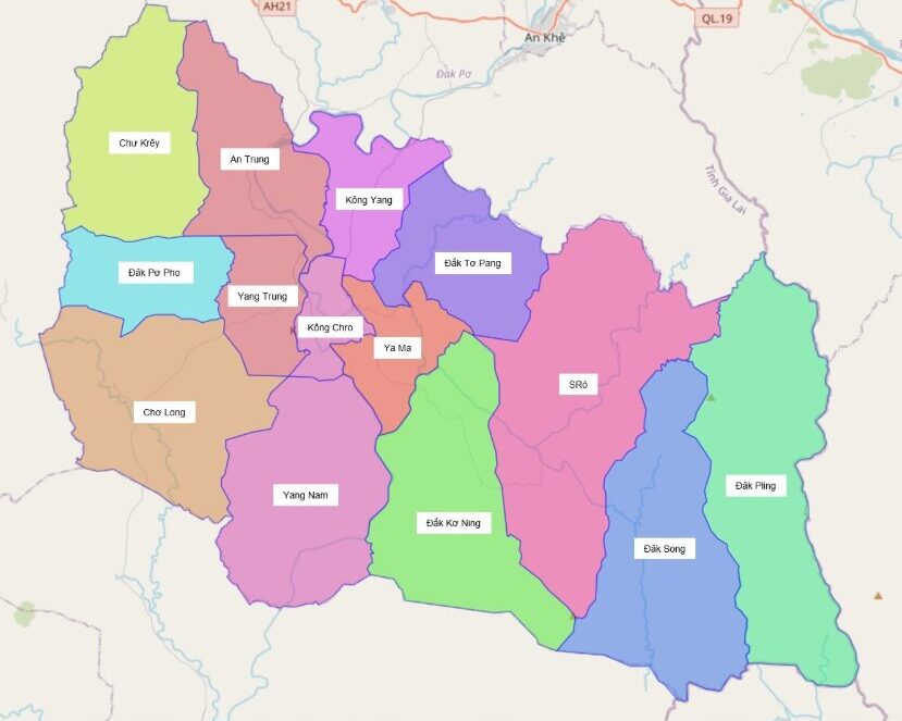 Bản đồ hành chính huyện Mang Yang