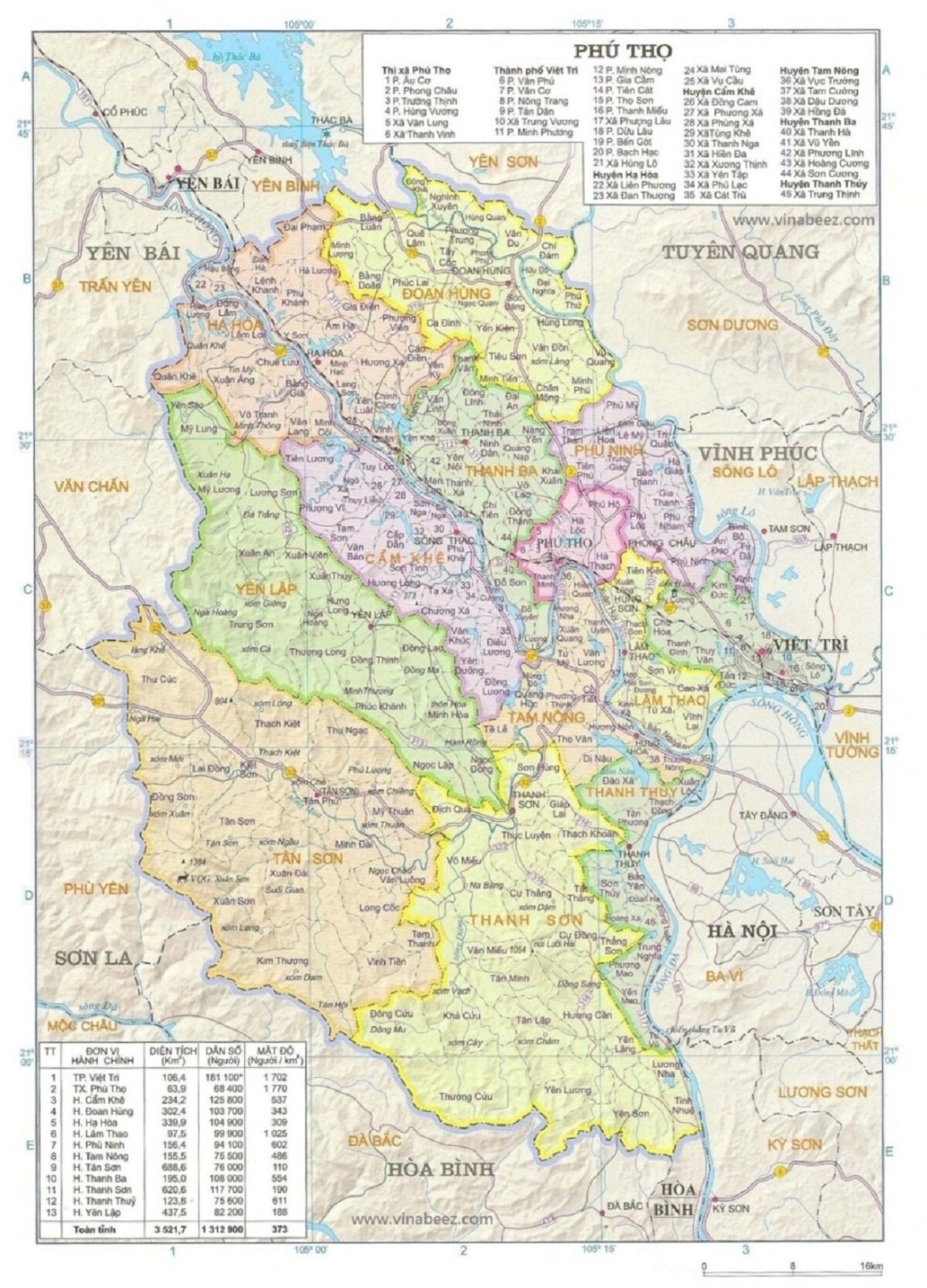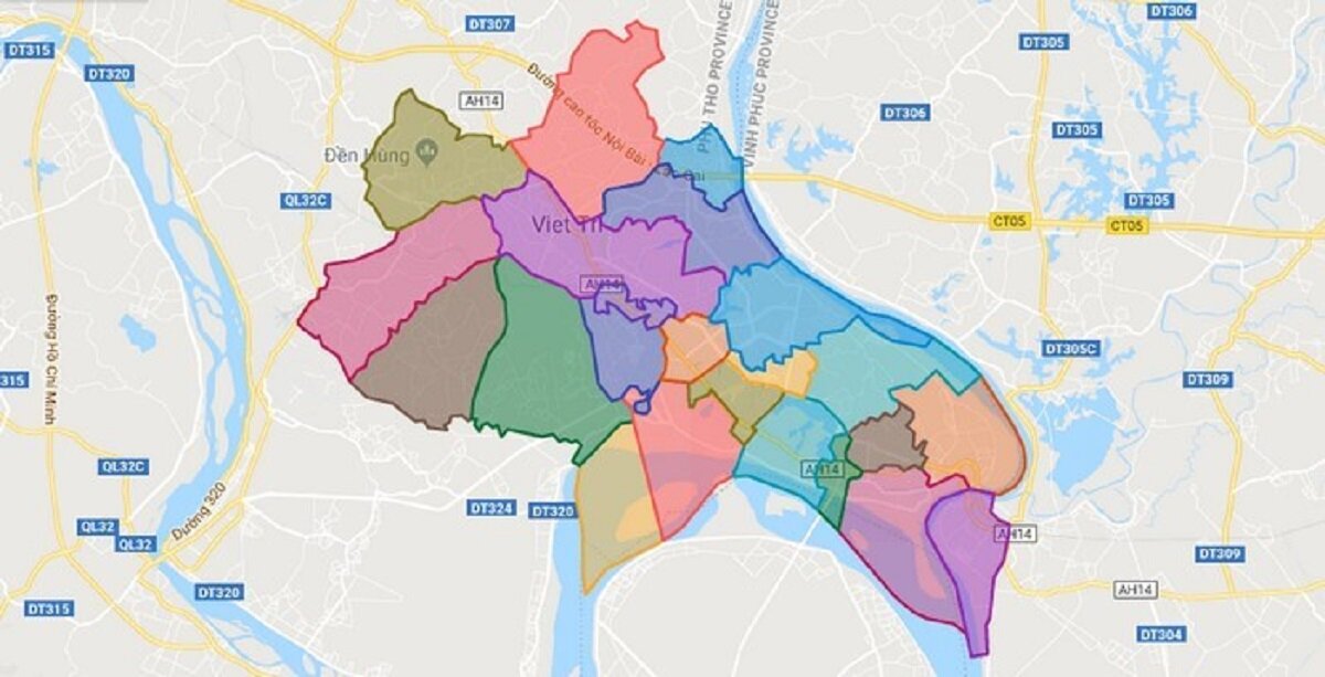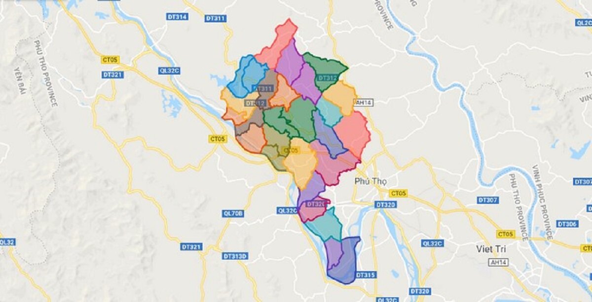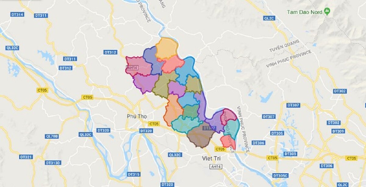 Bản đồ hành chính các huyện tỉnh Phú Thọ