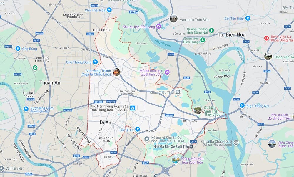 Dĩ An được xem là điểm giao thoa chiến lược giữa Bình Dương và TP.HCM. Nhờ vị trí tiếp giáp các tuyến giao thông huyết mạch, thành phố này trở thành trung tâm công nghiệp – thương mại sôi động, thu hút đông đảo lao động và nhà đầu tư.
